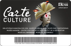 Pensez à la Carte Culture qui vous permet d’accéder en illimité aux musées et bibliothèques de la Ville de Lyon. Vous bénéficiez aussi de réductions sur des spectacles, des séances de cinéma, des concerts, ainsi que sur les entrées dans les musées partenaires de la Ville de Lyon.